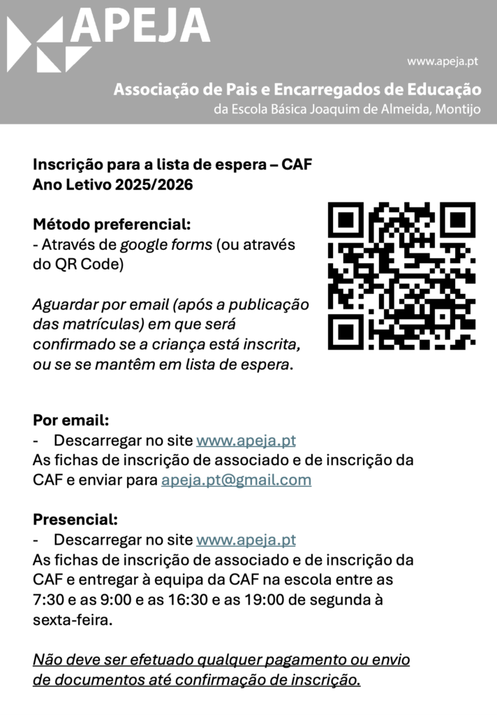 Lista de Espera do CAF – Ano Letivo 2025/2026Formulário de Inscrição (Google Forms)